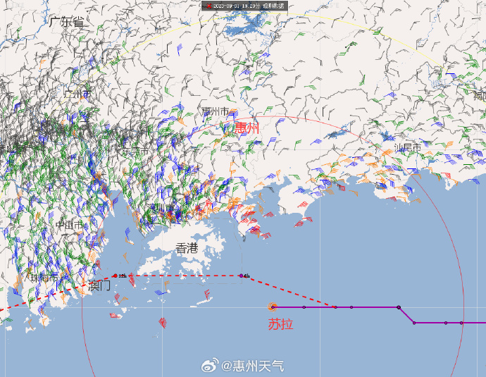 正經(jīng)過惠州所在經(jīng)度,這表明蘇拉登陸惠州的概率已基本為零。但是由于蘇拉本身強(qiáng)度極大,又描邊海岸線,所以即使不登陸惠州,在其前行的過程中依舊會給我市南部地區(qū)帶來嚴(yán)重風(fēng)雨影響,預(yù)計今晚到明天我市風(fēng)雨仍處于加大趨勢,請大家繼續(xù)做好防臺相關(guān)工作!非必要不出門!(來源:惠州天氣)
