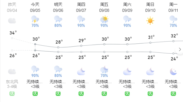 預計,未來一周前中期受臺風“海葵”影響,我市有一次強降水和大風過程,后期降水仍頻繁。