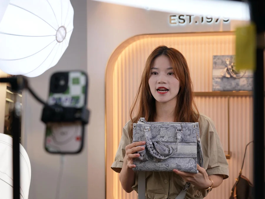 “我們公司主要從事中高檔時尚皮具的設計、研發、生產及銷售,是亞太地區知名的中高端女包品牌運營商。”林斌生介紹,目前,公司擁有超400家銷售網點。在天貓、京東、抖音、唯品會等主流電商平臺上,連續多年名列女包行業頭部品牌。