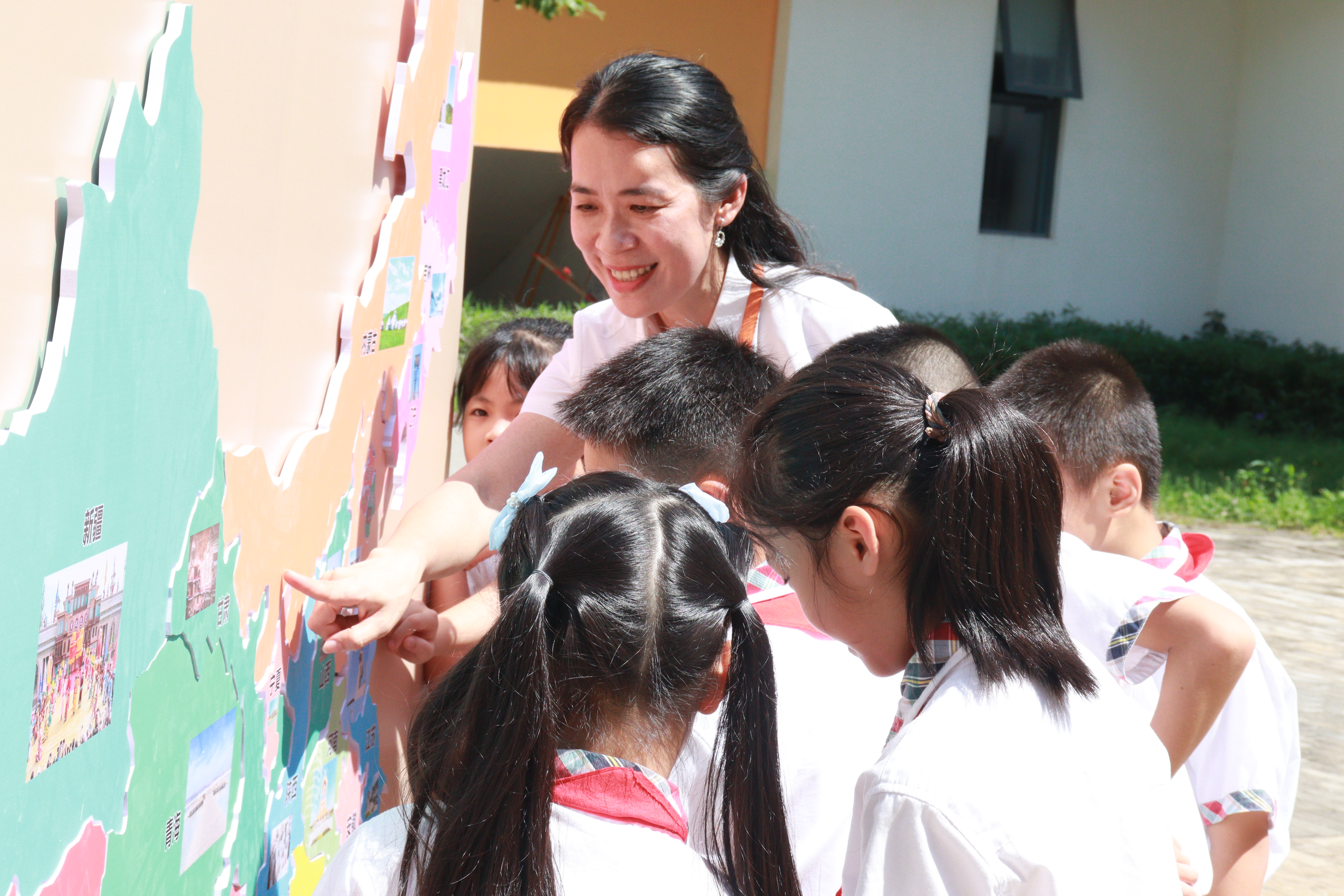 9月4日上午,惠城區金山湖小學開展了以“禮遇成長·探祖國之美”為主題的秋季學期開學典禮。典禮上,學校開展了“智拼國土,探索中國”拼圖比賽,孩子們以班級為單位,穿梭于創意迷宮中,快速找到貼在迷宮中的各省份拼板,仔細觀察每個省級行政區的形狀及在祖國的位置,最后將拼板一起拼入其中,拼出了一幅美麗的“中國地圖”。通過動手拼制國家版圖,孩子們了解了祖國的版圖及地理環境、特色文化,用童眼觀察祖國的疆域,用童心感受祖國疆域的遼闊,知道祖國的領土每一寸都神圣不容侵犯。