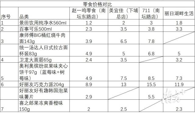 表格中的趙一鳴零食(南壇東路店)、美宜佳(下埔總店)、711(南壇路店)均分布在橋西街道南壇片區(qū)內(nèi),三家店在500米的范圍內(nèi)。美宜佳、711代表街頭小型便利店,麗日湖畔生活是惠州大型連鎖超市。可以看到,量販零食店里一些品類的價(jià)格相當(dāng)于后三者的5-8折。疫情帶來的經(jīng)濟(jì)承壓,讓越來越多的消費(fèi)者對(duì)價(jià)格更為敏感,加速了主打高性價(jià)比的零食集合店潮漲。