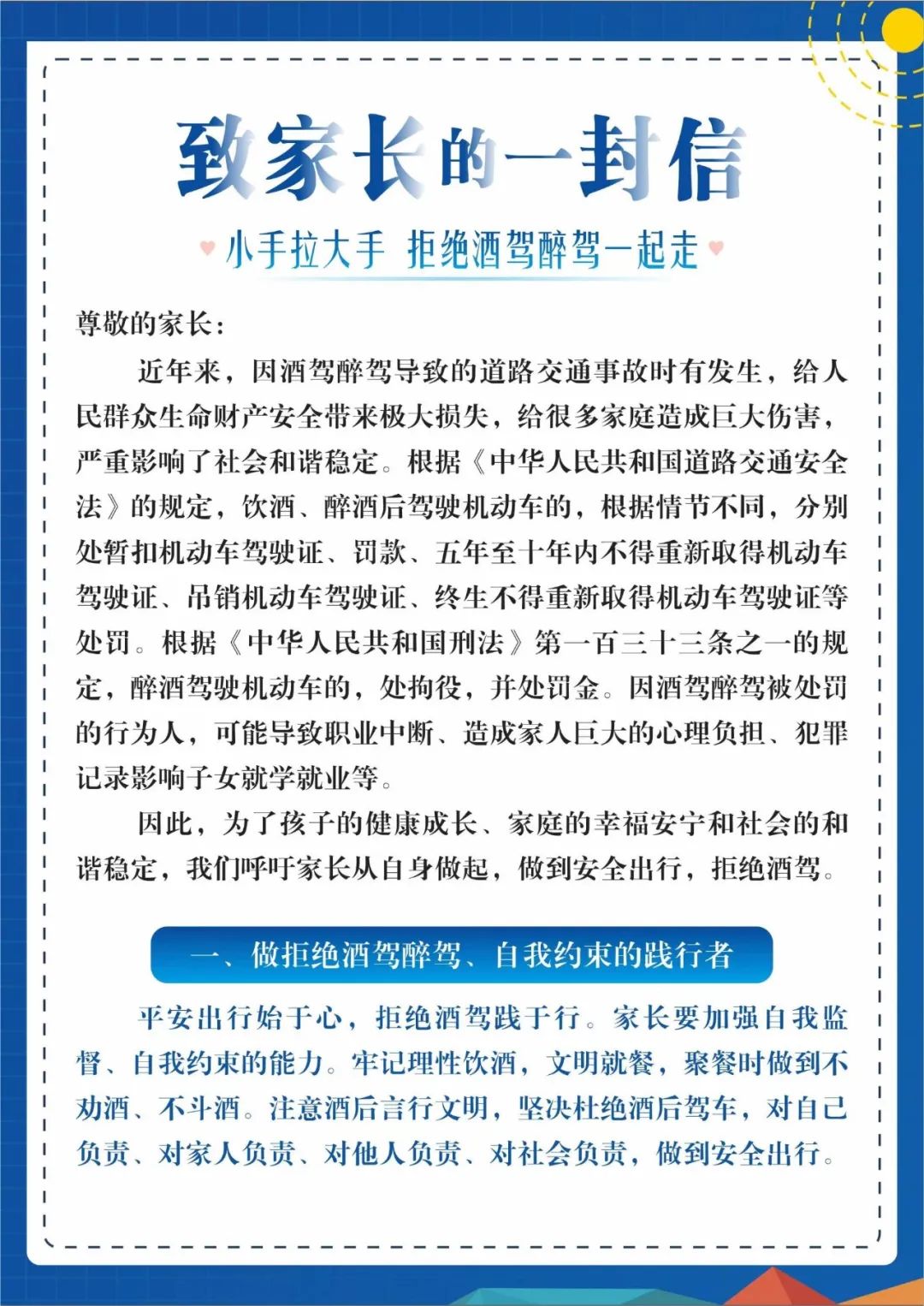 惠東縣檢察院通過微信公眾號向社會公眾發出的致家長的一封信《小手拉大手,拒絕酒駕醉駕一起走》,由該院未檢部門聯合教育部門向全縣各學校進行轉發及線上簽閱。