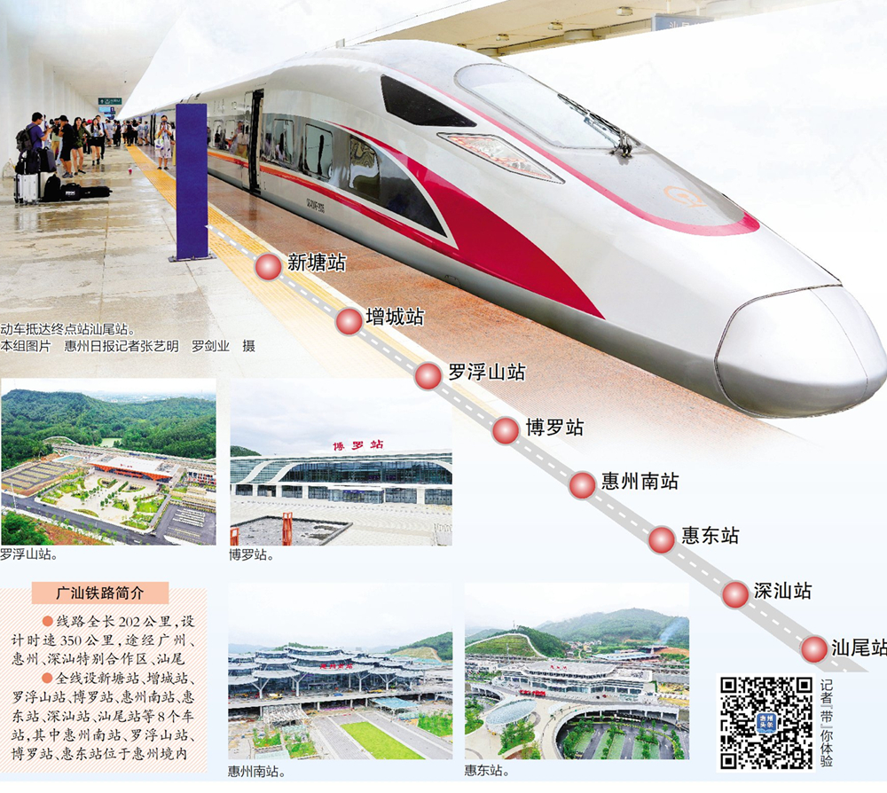 本月底,廣汕鐵路將通車運行。屆時,廣州、惠州、汕尾將真正進入“一小時生活圈”。惠州南站到新塘站、汕尾站預計時間均在30分鐘左右。