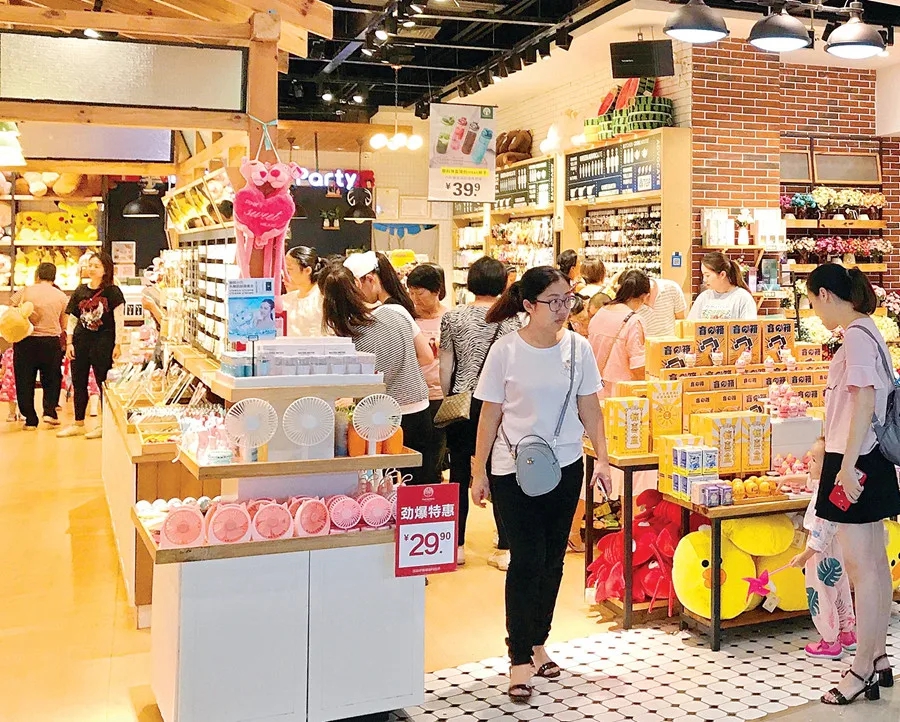 市區江北某購物中心人頭攢動,購銷兩旺。