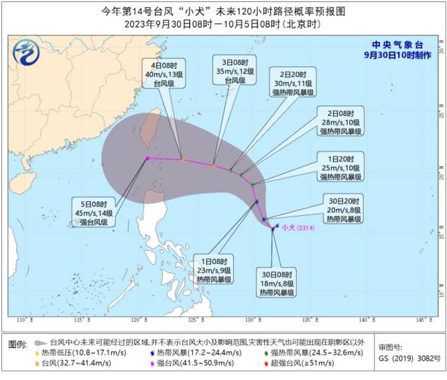 預(yù)計(jì),“小犬”將以每小時(shí)10至15公里的速度向西北方向移動(dòng),強(qiáng)度逐漸增強(qiáng),10月2日開始轉(zhuǎn)向偏西方向移動(dòng),逐漸向臺(tái)灣島南部一帶沿海靠近。按現(xiàn)有預(yù)報(bào)路徑,假期末期至復(fù)工初期,“小犬”或影響我國(guó)沿海地區(qū)。