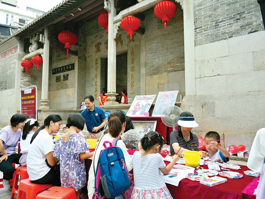當天上午,在東江民俗文物館,一場龍門農民畫技藝展演吸引了不少家長和孩子熱情參與。龍門農民畫歷史悠久、色彩絢爛、內涵豐富,被稱作“嶺南藝術奇葩”,是惠州一張閃亮的文化名片。“這樣的活動很好,能讓孩子感受到傳統文化的魅力和博大精深。”參與活動的市民紛紛點贊。
