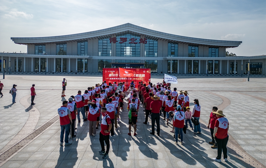 10月5日上午,惠州市撿跑協(xié)會、博羅縣麻陂鎮(zhèn)新時代文明實踐所、博羅縣麻陂撿跑志愿服務隊、壹家親撿跑志愿服務隊等多支惠州社會跑團近100名志愿者,從惠州北站乘坐贛深高鐵到博羅北站,在麻陂鎮(zhèn)金湖村開展公益撿跑活動,用行動傳遞奔跑的力量和文明理念。麻陂中學學生鄧純說:“雖然跑步過程有點累,但是既鍛煉了身體,也美化了鄉(xiāng)村,非常有意義。”
