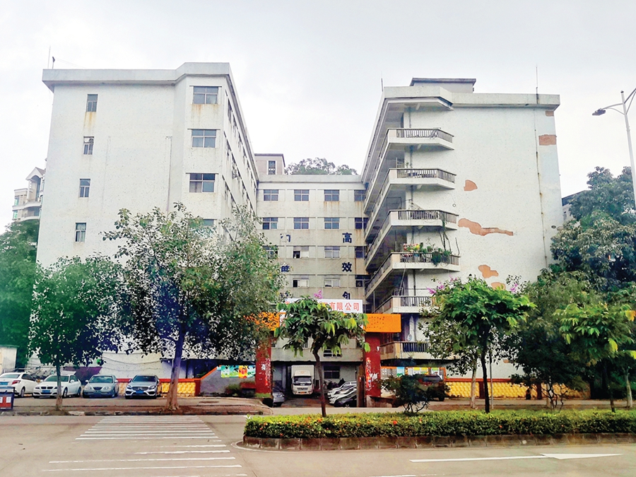下角豐山路龍興彩印廠廠房,樓高7層,建筑面積約1萬平方米,始建于20世紀90年代。該廠房像U字形,門對豐山路,背靠豐山,面對惠州植物園,毗鄰惠州西湖,地理位置和自然環境非常優越。從2000年開始,惠州市龍興彩色印刷有限公司在此從事紙制包裝用品、廣告宣傳品印刷,是惠州民營印刷業發展史的見證者之一。后因經營調整,該處廠房部分出租給惠州天源手袋廠,開展手袋生產業務,一時興盛。
