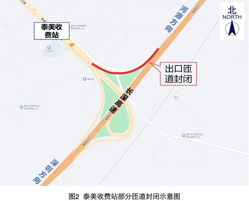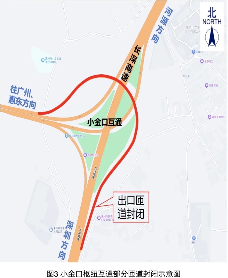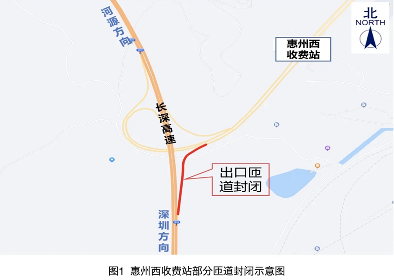 其中,今年10月15日至明年6月15日,長深高速惠州段(惠河高速)惠州西收費站南往北方向出口匝道封閉,禁止車輛通行;今年10月15日至明年2月7日,長深高速惠州段(惠河高速)泰美收費站北往南方向出口匝道封閉,禁止車輛通行;今年10月15日至明年2月7日,長深高速惠州段(惠河高速)小金口樞紐互通南往北方向出口匝道封閉,禁止車輛通行。