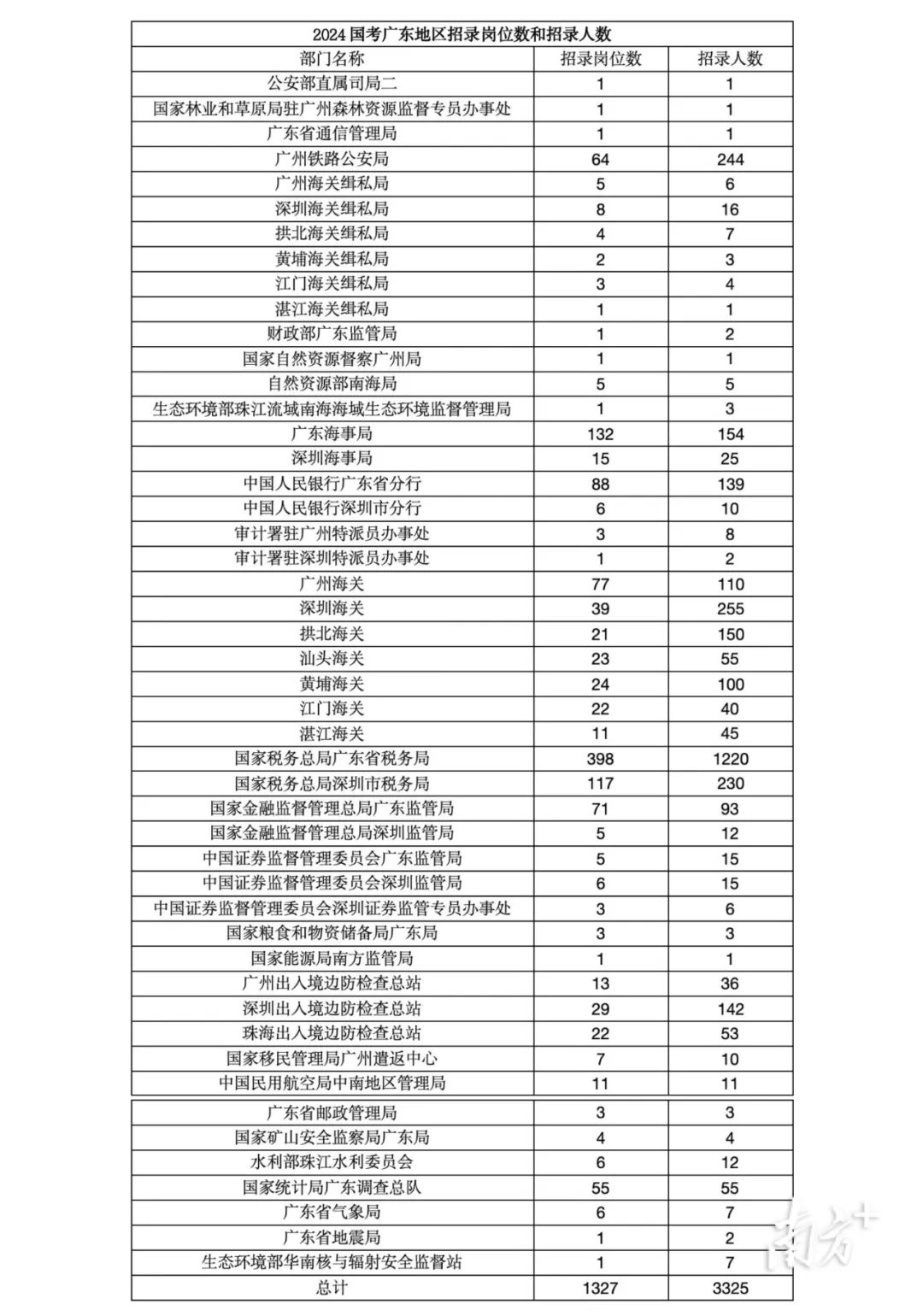 廣東地區(qū)有1327個崗位參加招考