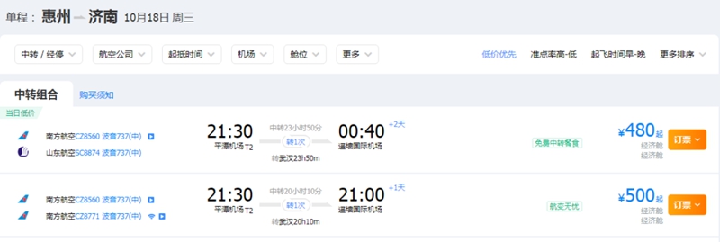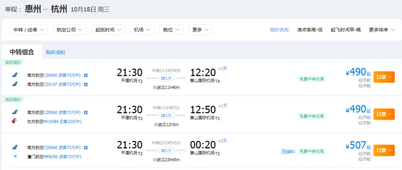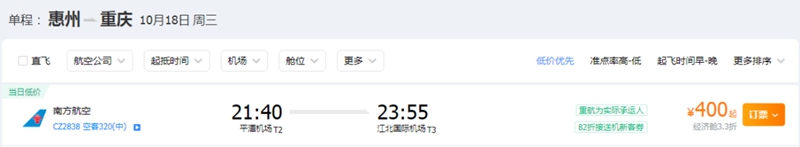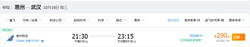 攜程數據顯示,國慶后至10月底的國內機票含稅均價為702元,較國慶期間國內機票均價1028元下降46%。在攜程機票低價榜可以看到許多近期一兩百元的特價機票:10月17日北京去西安的機票220元起;10月17日深圳去杭州的機票200元起。