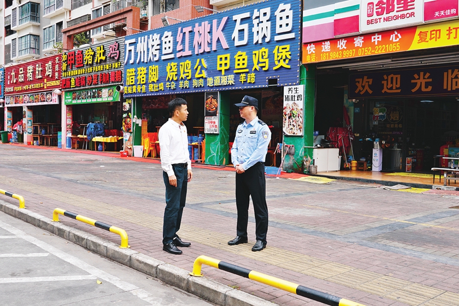 “劉政委、翟書記,你們好!防撞護(hù)欄已經(jīng)重新裝好了。”近日,惠州市公安局戶政支隊(duì)民警與結(jié)對(duì)共建單位仲愷高新區(qū)惠南科技園惠科社區(qū)工作人員一起到社區(qū)夜間經(jīng)濟(jì)場(chǎng)所進(jìn)行安全風(fēng)險(xiǎn)防范巡查,發(fā)現(xiàn)存在個(gè)別防撞護(hù)欄損壞的情況,沒想到工作人員還沒回到社區(qū)辦公室,問題就得到整改落實(shí),從發(fā)現(xiàn)問題到解決問題耗時(shí)不到30分鐘。