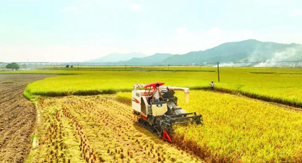 農機在“稻海”中忙碌。