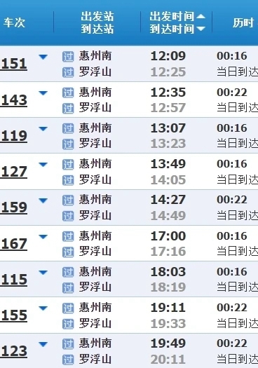 圖片來(lái)源12306官網(wǎng),惠州南-羅浮山最短單程最短歷時(shí)00:16