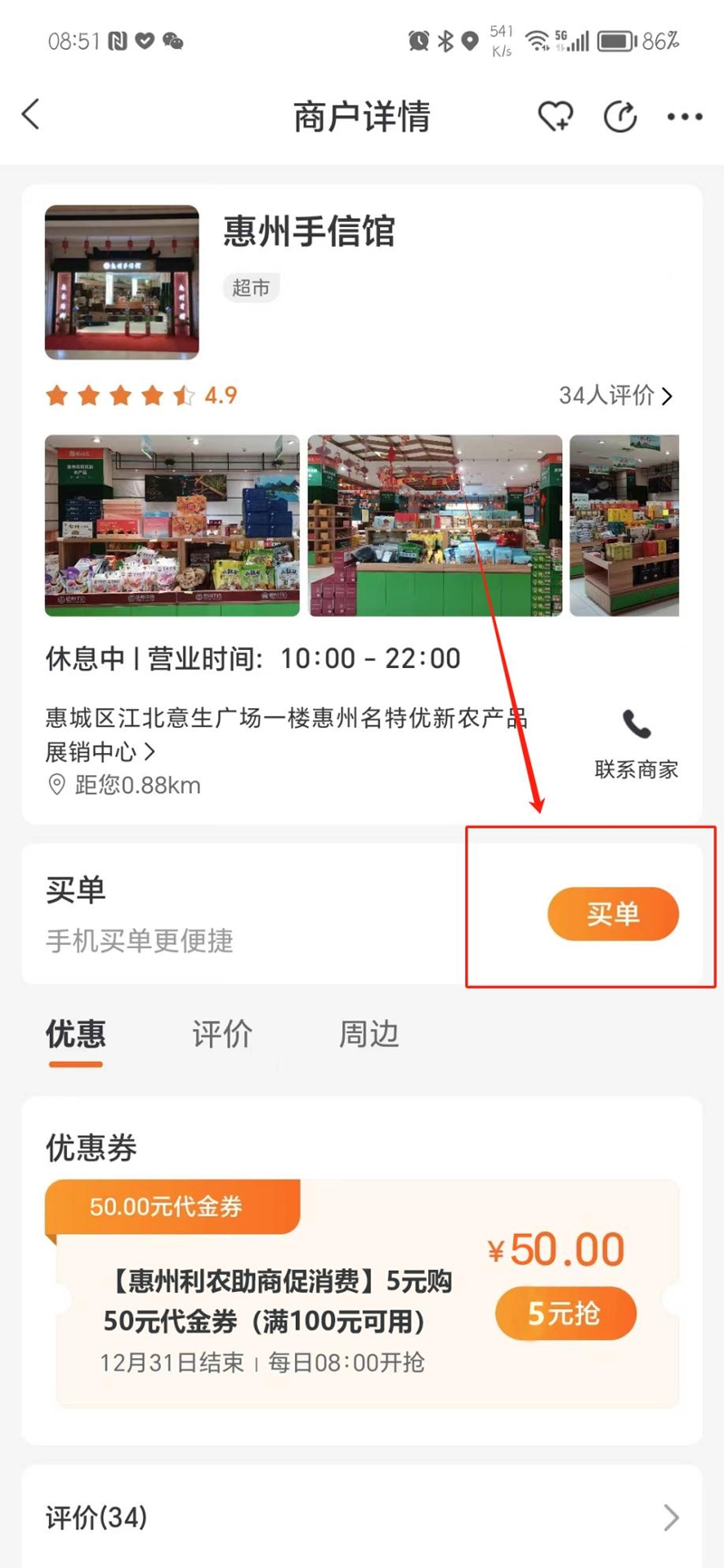 5.進入頁面,點擊購買50元代金券