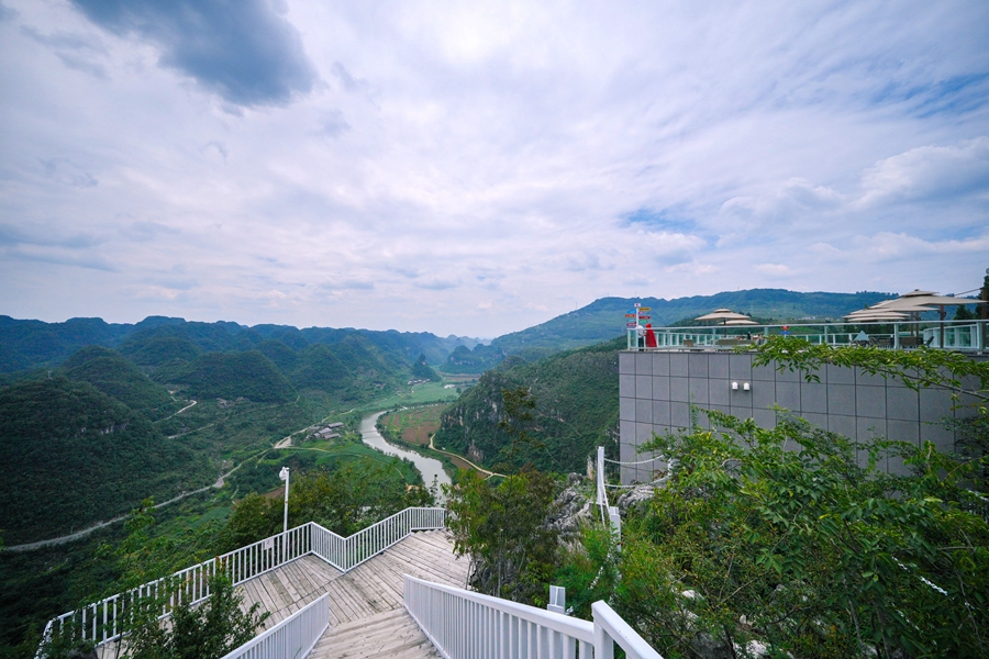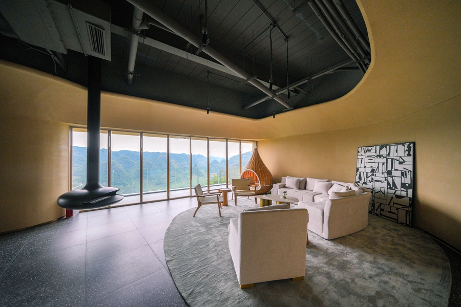 為解決“如何讓游客留得下來”的問題,安龍縣世紀投資文旅發展有限公司首先將溶巖美術館改造成為獨具特色的懸崖酒店。該公司執行董事吳斌介紹,美術館的內部被改造成11間客房+一個公共活動空間,房間以溶巖秘境風格裝修,走進去仿佛穿越到史前。透過房間的落地窗,眺望峰林、峭壁、山谷、河流等喀斯特地貌景觀,更可感受與自然融為一體的喜悅與神奇。酒店屋頂被打造為觀景臺,一旁還配了無邊際泳池,徜徉其中,看云卷云舒,觀浩瀚星空,自在山水間。