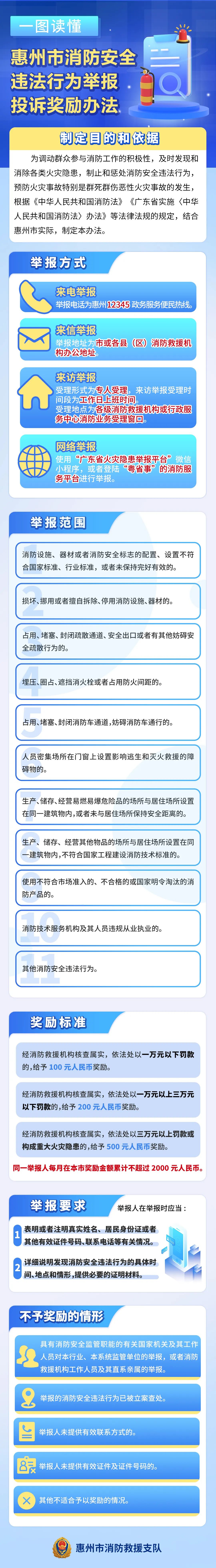 一圖讀懂→惠州市消防安全違法行為舉報(bào)投訴獎(jiǎng)勵(lì)辦法