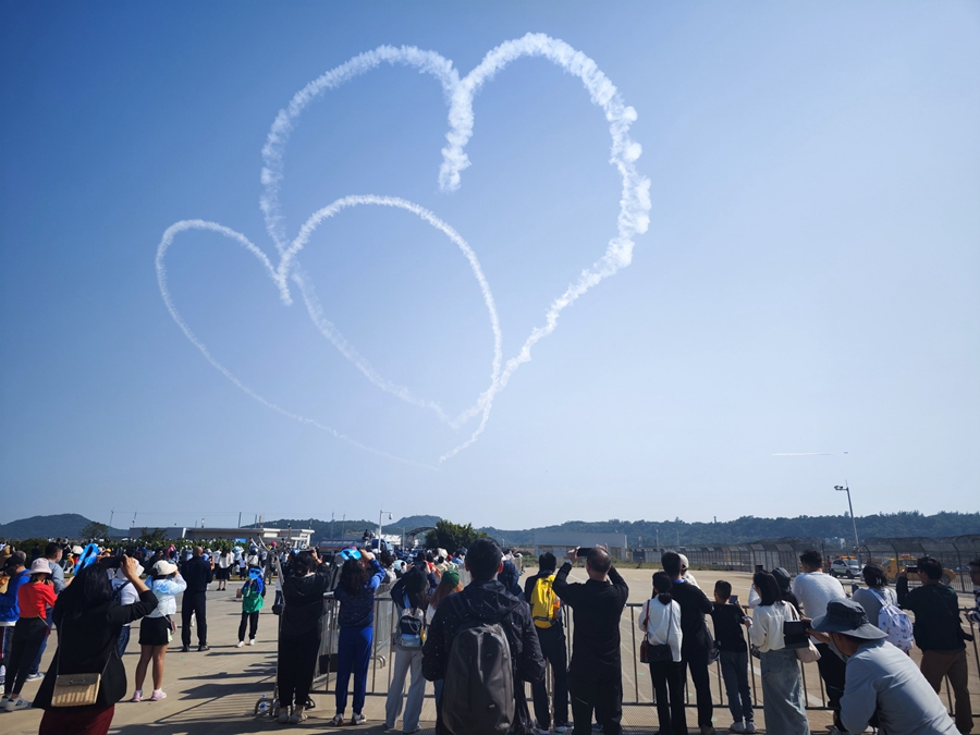 湖南山河飛行表演隊進場,現場觀眾加油助威。