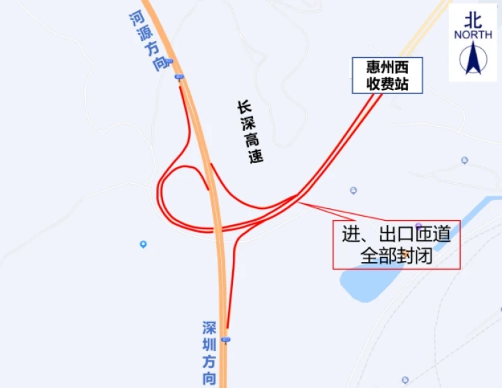 期間,建議長深高速往返惠州的車輛,請選擇就近的惠州北收費站或平南收費站上下高速;或經珠田互通轉廣龍高速,從幸福收費站或惠環收費站上下高速。