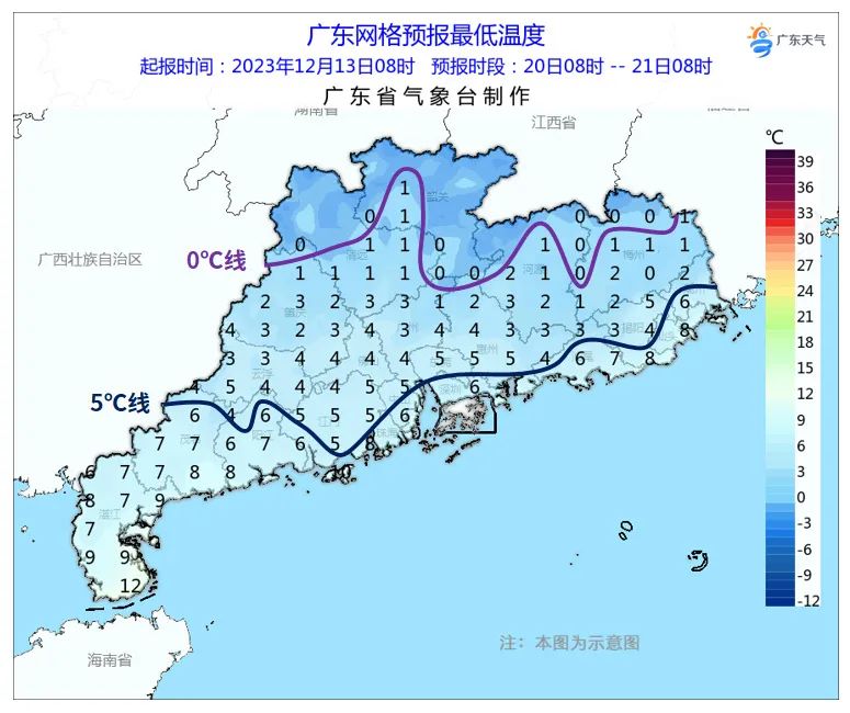 過程最低氣溫粵北5℃左右,南部10℃左右