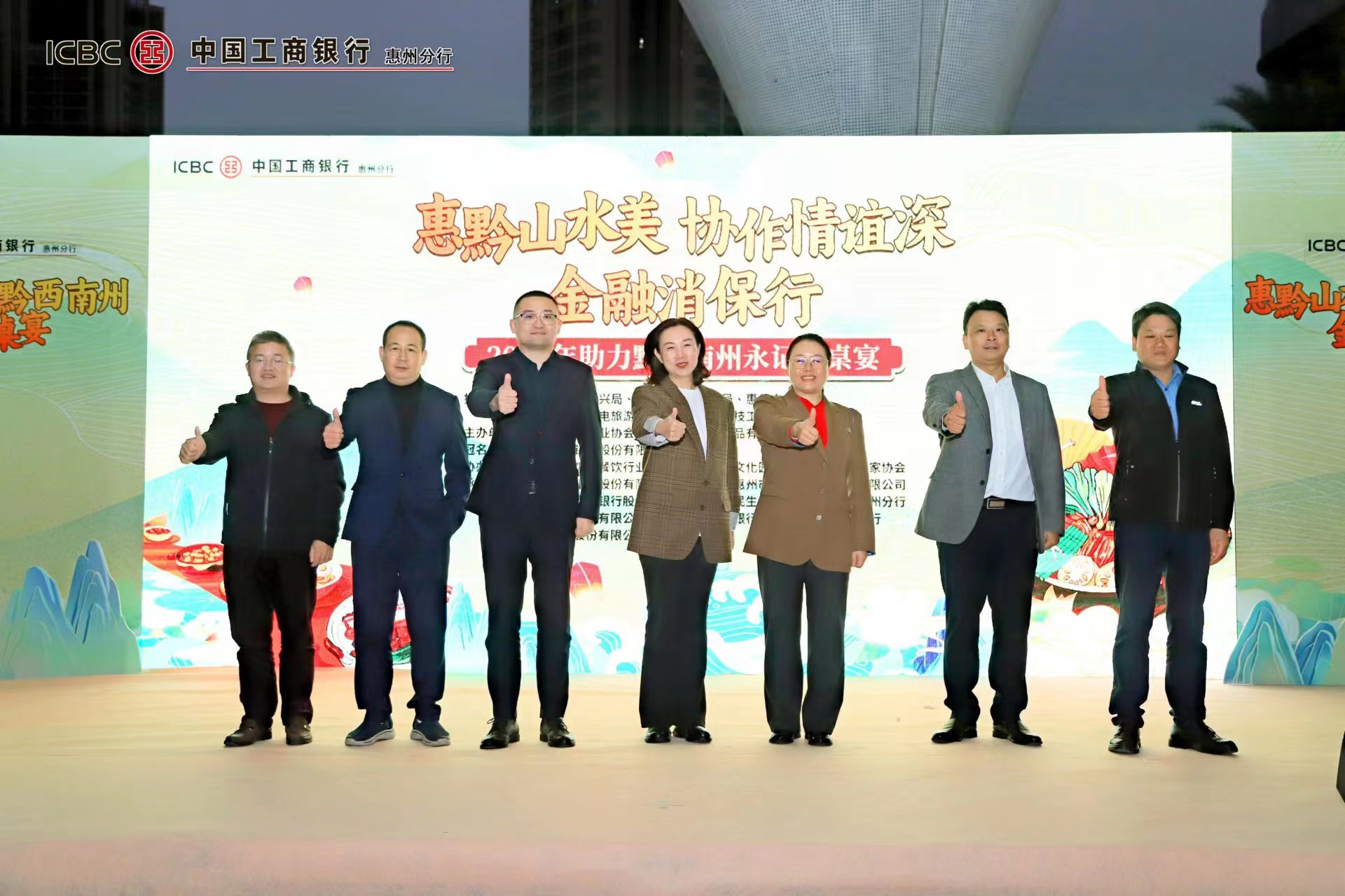 2023年12月16日,“惠黔山水美 協作情誼深——金融消保行2023年助力黔西南州永記長桌宴”在惠州讀者文化園成功舉辦,來自惠州市各大餐飲企業、金融機構以及各協會代表們齊聚一堂,共襄盛舉。此次活動由惠州市餐飲行業協會、貴州冊亨永記食品有限公司攜手惠州各大金融機構共同舉辦,中國工商銀行股份有限公司惠州分行冠名贊助。活動旨在通過東西部協作,加強惠黔兩地的交流與合作,推動鄉村振興和黔西南州農特產品的推廣與銷售。
