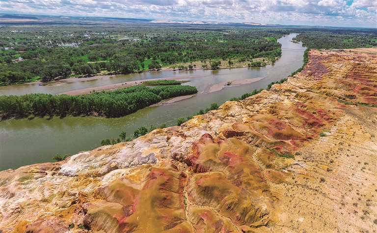 額爾齊斯河的猛烈沖擊,當(dāng)?shù)氐目耧L(fēng)侵蝕,形成了五彩灘懸崖式的雅丹地貌。因河岸巖層抗風(fēng)化能力強(qiáng)弱不一,輪廓參差不齊,讓富含各種礦物質(zhì)的巖石裸露,在陽光下幻化出種種異彩,因而得名“五彩灘”。每當(dāng)刮風(fēng)時(shí),溝壑里、巖石下,到處都會(huì)發(fā)出長(zhǎng)短不一、高低不同的怪叫聲。
