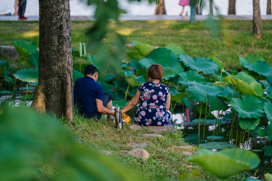6月12日 惠州豐渚園盛夏荷花盛開,不少市民前來(lái)避暑賞美景。