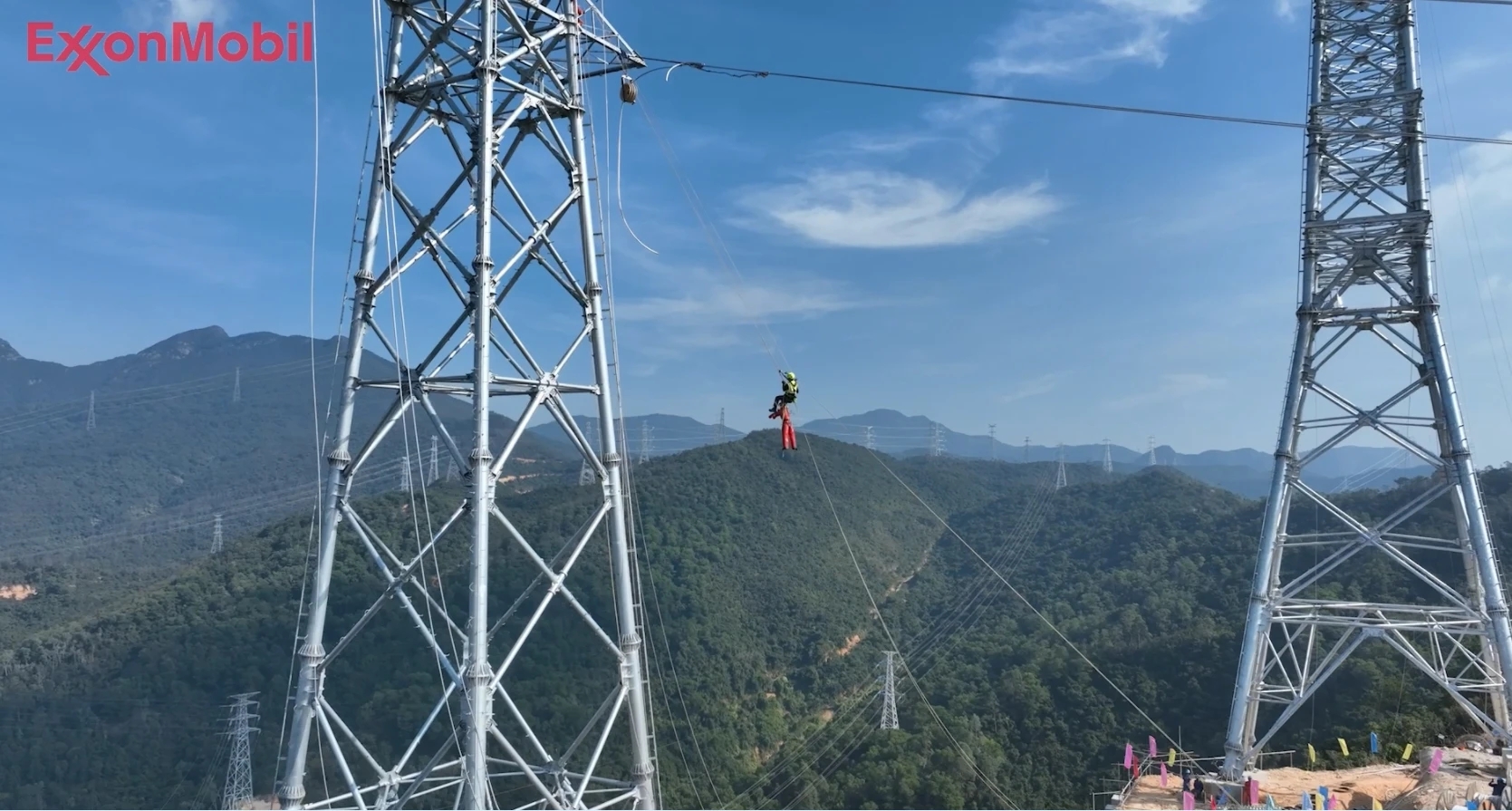 “報告,我隊一名工人在高壓電纜塔上作業時,意外墜落,呼叫救援!”“救援隊收到!”2023年11月24日,埃克森美孚組織開展了一場高空救援演練,模擬一名工人在高壓電纜塔上作業時意外墜落,被安全帶吊在36米高處,急需進行高空應急救援。埃克森美孚現場救援隊接到求救電話后,攜帶專業高空繩索救援裝備疾馳山頂,僅在15分鐘內就將傷員救到地面并交由現場急救醫生處置。