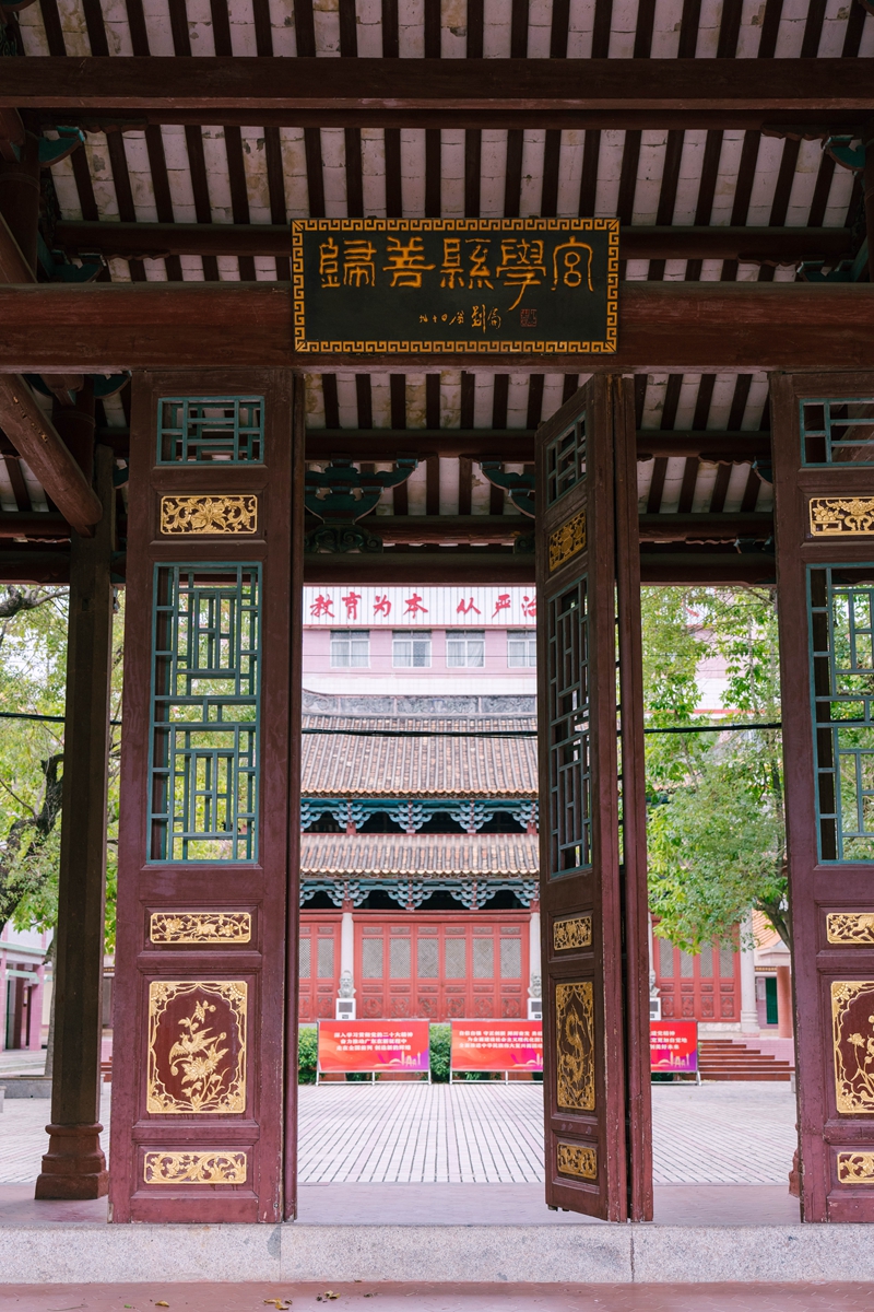 作為惠州歷代培育人才的重要場所,明清時期,歸善學宮曾先后修建26次,經過3次遷址。昔日歸善學宮建筑齊全,如今也是惠州最古老的殿堂建筑,具有豐富的歷史價值和濃厚的文化內涵。如今,歸善學宮依然屹立于此,見證并講述著惠州崇文重教的文化故事。