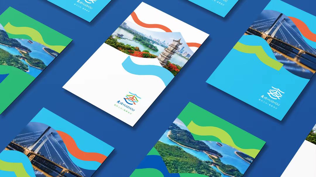 標(biāo)志由惠州地標(biāo)“泗洲塔”與象征美好匯聚、繁榮發(fā)展的環(huán)繞飄帶創(chuàng)意變化成“惠”字,強(qiáng)調(diào)城市品牌名稱(chēng)。整體突出城市的歷史底蘊(yùn)與現(xiàn)代發(fā)展,構(gòu)成多元美好匯聚的視覺(jué)意象。其中,綠色飄帶描繪了城市的綠色自然與宜居生態(tài),紅色飄帶代表活力綻放的市花勒杜鵑,體現(xiàn)城市紅色文化,綠色飄帶象征城市的海洋文化與包容胸懷。視覺(jué)核心“泗洲塔”橙色的運(yùn)用,則意在彰顯城市底蘊(yùn)深厚的歷史文化內(nèi)涵。此外,標(biāo)志在字體設(shè)計(jì)上以蘇東坡“惠州”二字書(shū)法風(fēng)格為藍(lán)本,突出城市東坡文化。