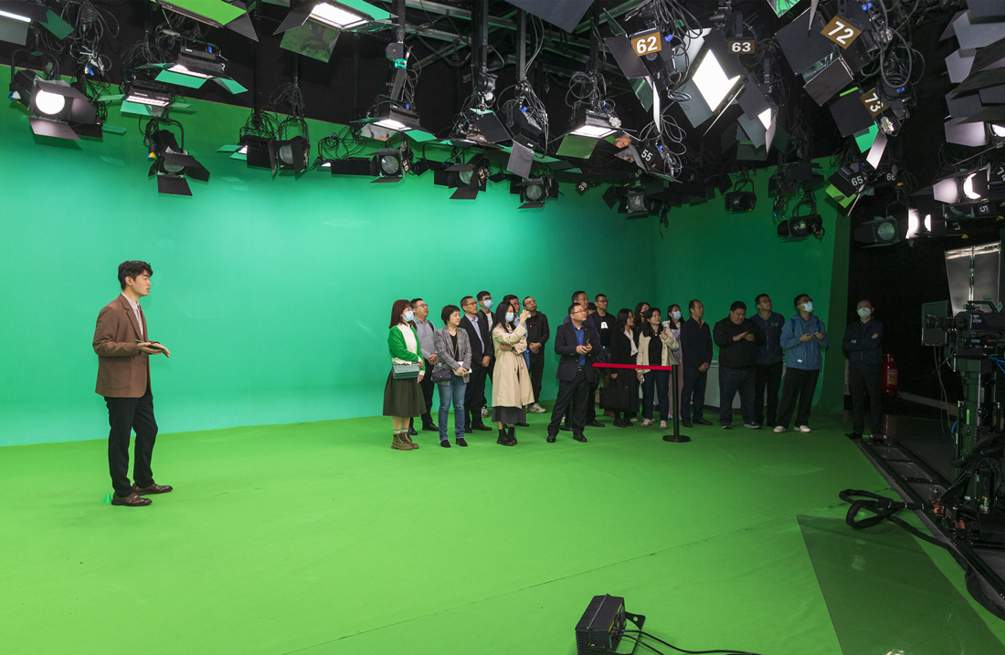 惠州市數字文化產業協會走訪調研團參觀虛擬演播廳。