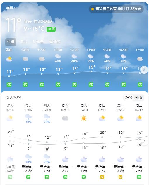 最低氣溫7~9℃!惠州發布寒冷黃色預警信號