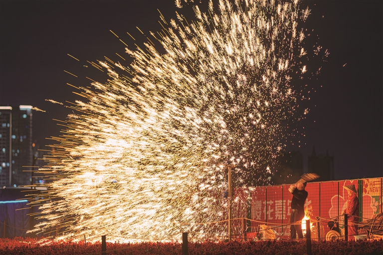 “非遺”打鐵花帶來焰火狂歡