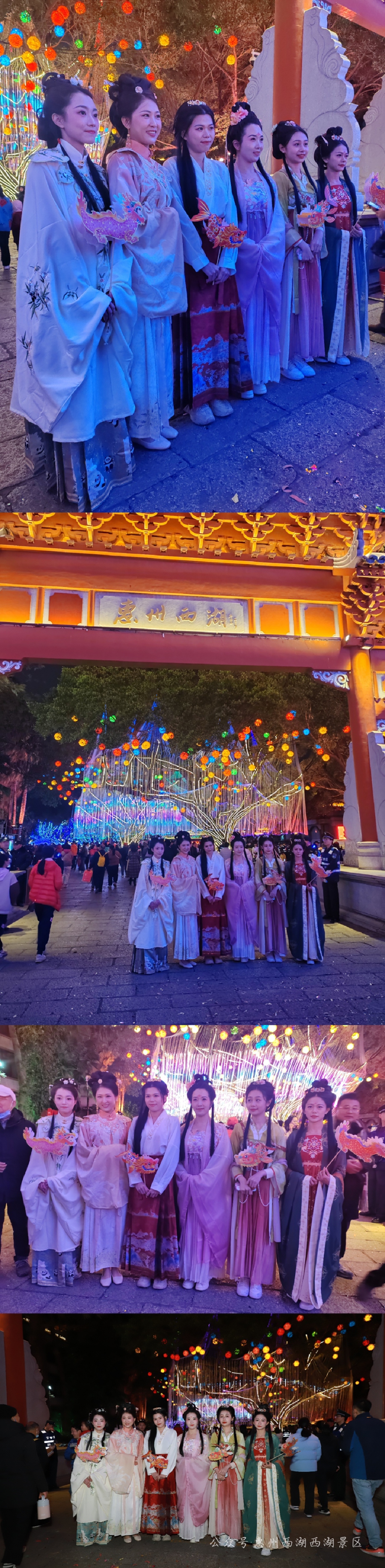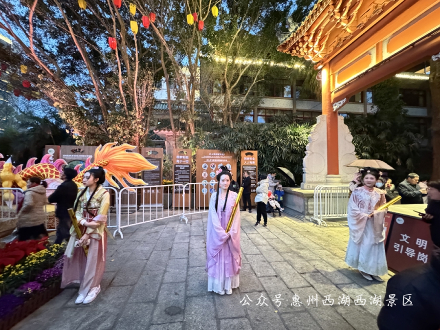 為弘揚(yáng)中華優(yōu)秀傳統(tǒng)文化,營造惠州溫馨歡樂的過年氛圍。2024年2月10日(正月初一)至2024年2月24日(正月十五)惠州西湖燈會期間,穿著全套傳統(tǒng)漢服或中國少數(shù)民族服飾的市民游客,可到惠州西湖東門和小北門入口處向(黃色馬甲)工作人員提出免預(yù)約入園需求,工作人員核準(zhǔn)后為市民開放綠色通道進(jìn)入景區(qū)。