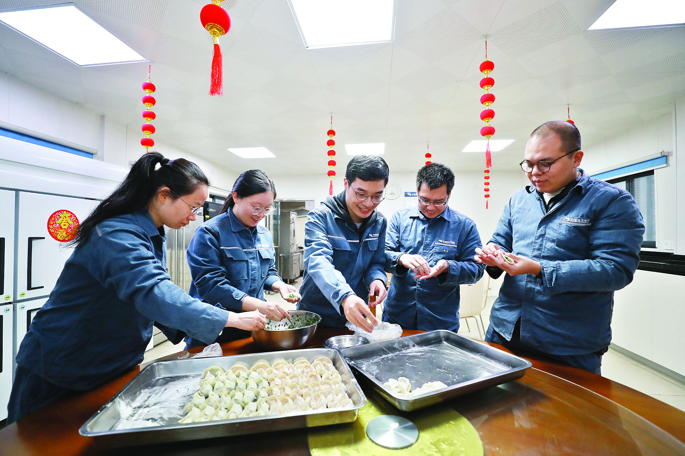 惠州供電局220伏誠信巡維中心春節值班人員除夕一起包餃子。 惠州日報記者張藝明 攝