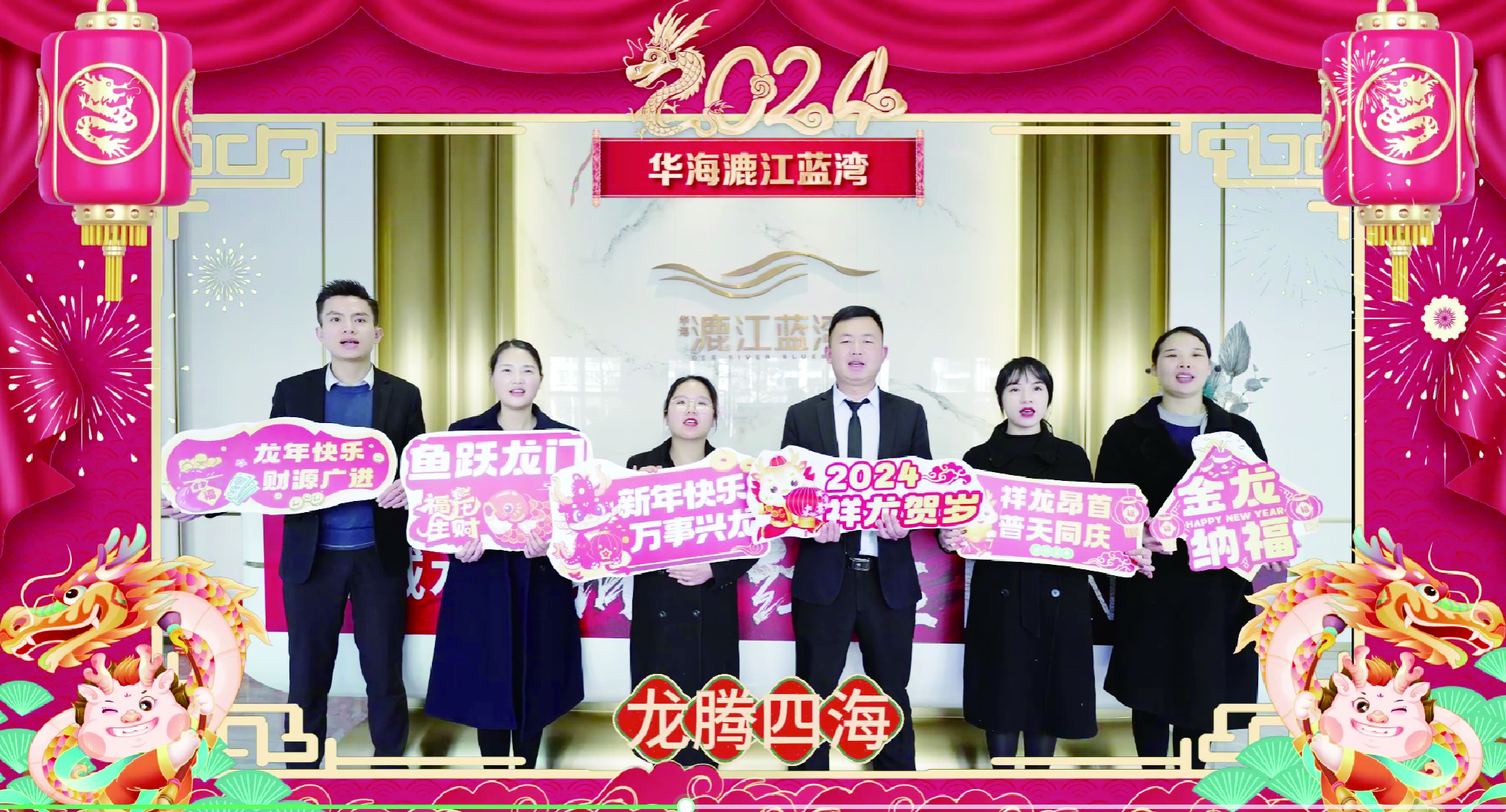 惠州華海漉江藍(lán)灣全體員工:“龍騰四海,財(cái)源滾滾,2024祥龍賀歲。祝大家新年大吉,前途似錦,有錢又有閑!新春置業(yè)選華海,鹿江低密選藍(lán)灣,2024和華海鹿江藍(lán)灣一起共赴美好!”