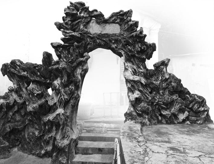 從有德堂大廳后門出去,可見一個仿太湖石修砌的拱門,造型獨特,保存完好。拱門上鑲嵌有一塊石碑,刻寫“梅塢”二字,為晚清著名金石書畫家符翕手書。“梅塢”與蘇東坡所寫松風亭下的梅花遙相呼應,別有韻味。