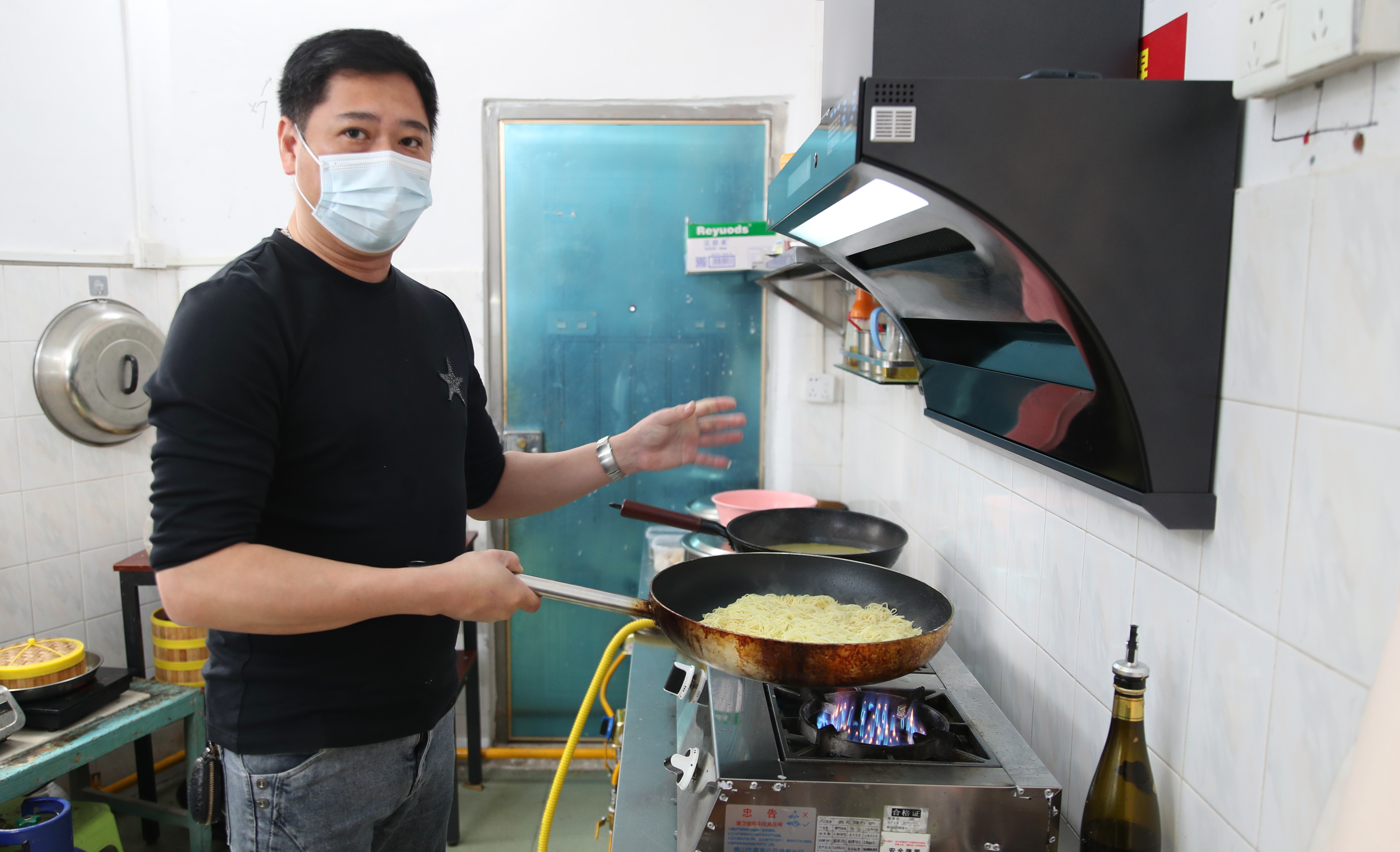 葉泳昌在做魚湯炒面。惠州日報記者鐘暢新 攝