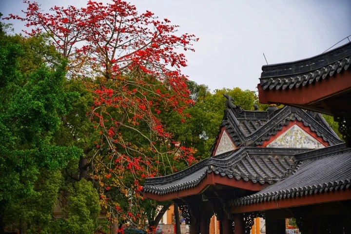 在市區(qū)環(huán)城西路邊、西湖里的豐渚園、東坡祠等有許多古老的木棉花鮮紅如火,吸引鳥(niǎo)兒和蜜蜂前來(lái)分享。