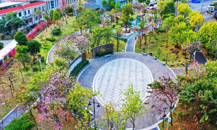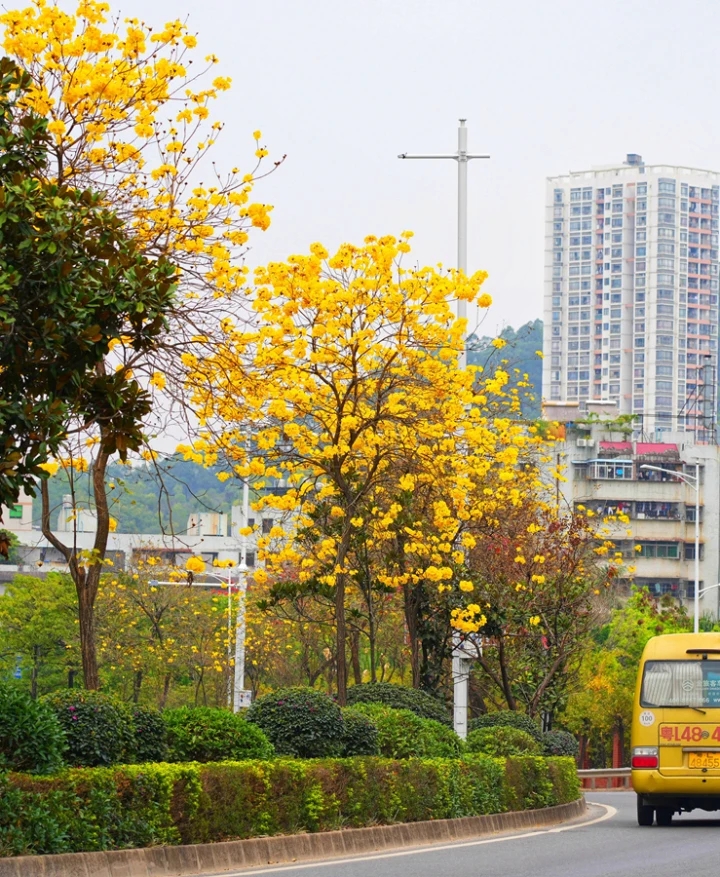 市區(qū)金榜路黃花風(fēng)鈴木盛放。