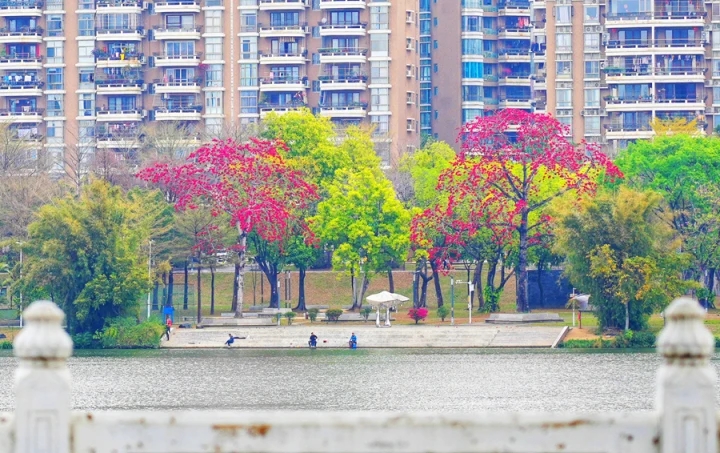 高大的木棉與遠(yuǎn)處的現(xiàn)代建筑相得益彰。