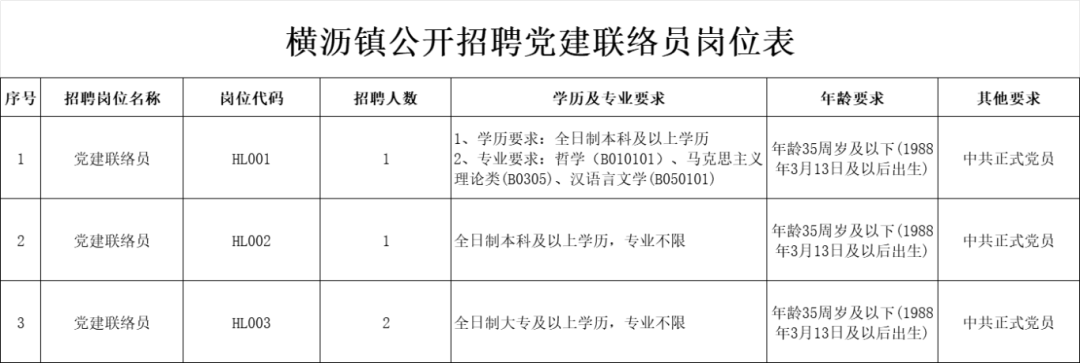 人選范圍:面向市內外公開招聘4名黨建聯絡員,作為鎮干部儲備人選。