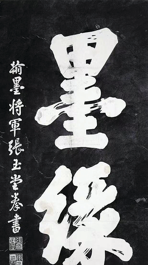 在香港九龍城侯王廟露天壁間,有張玉堂的拳書“墨緣”二字。