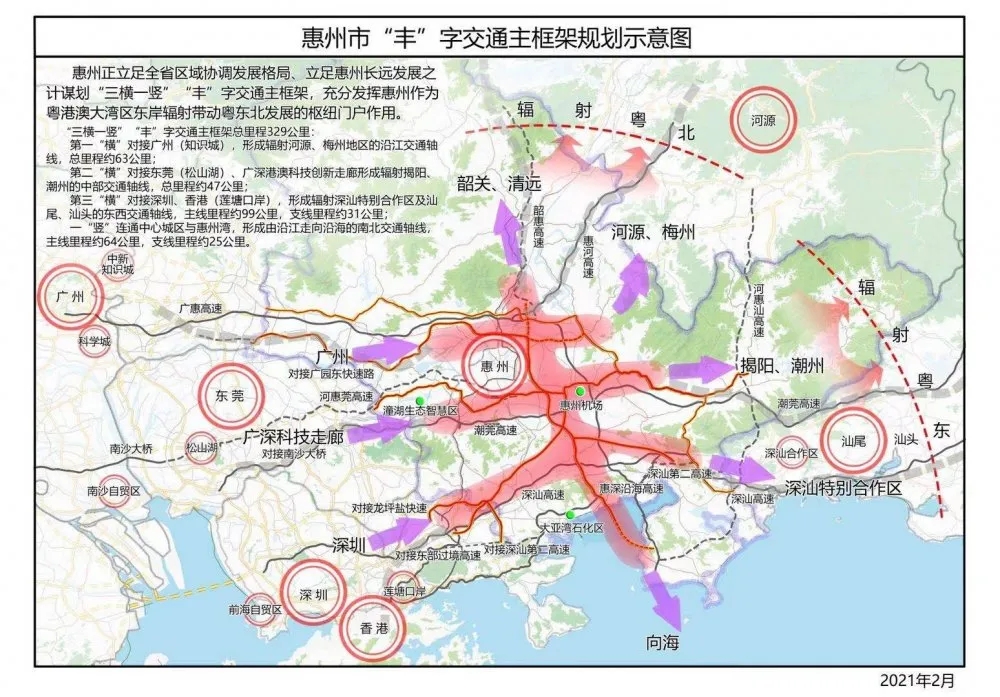 此外,“豐”字交通的1號公路、惠增高速、惠坪高速也納入了重點建設項目。惠州機場高速公路項目則被列為預備項目。