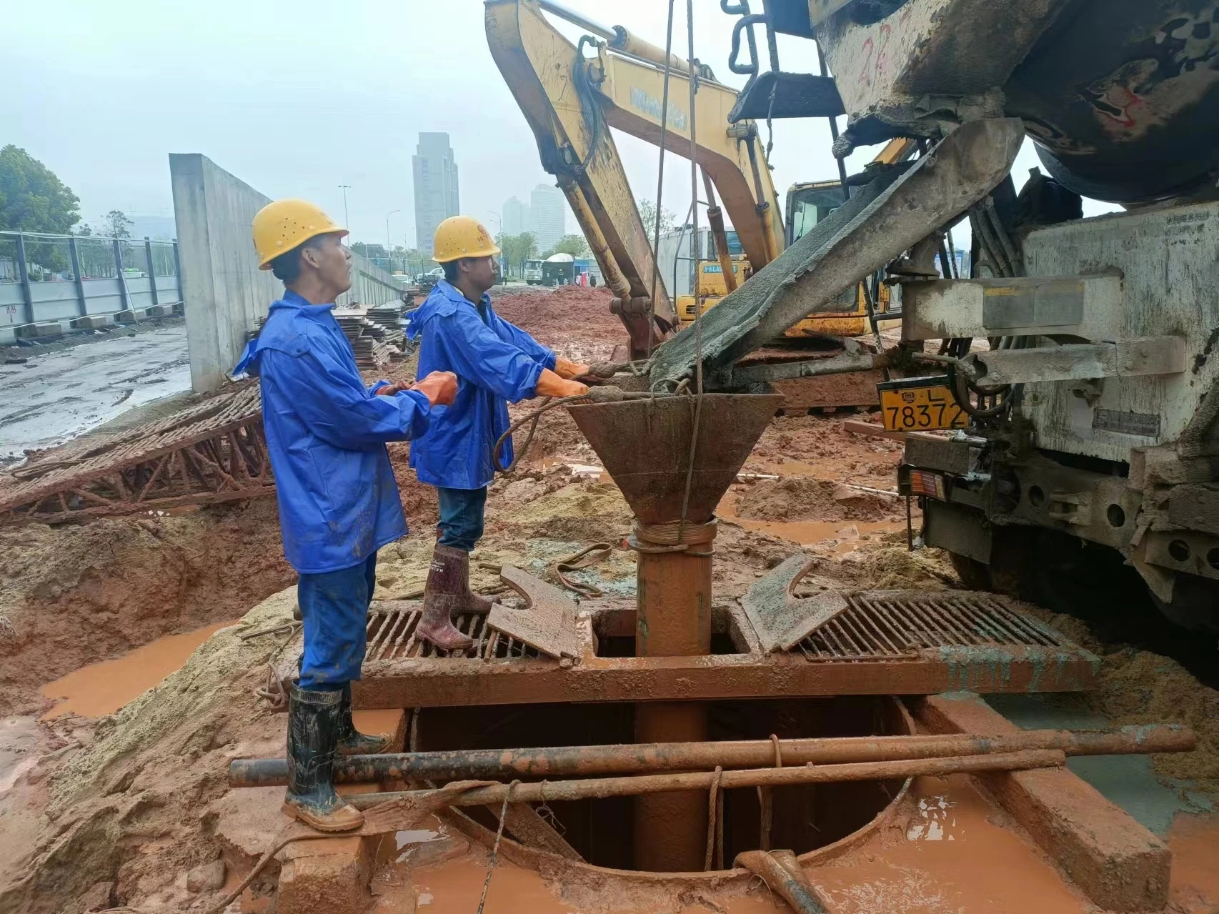 日前,在中鐵廣州局鵝城大橋東江三路施工現場,隨著最后一車混凝土注入,標志著鵝城大橋樁基施工全部完成,為今年建成通車打下堅實基礎。