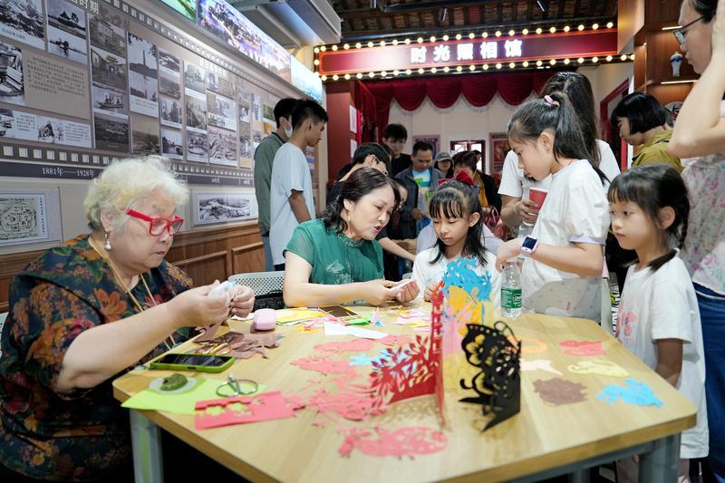 惠城非遺展示館現(xiàn)場剪紙教學(xué)。惠州日報(bào)記者陳濤 攝