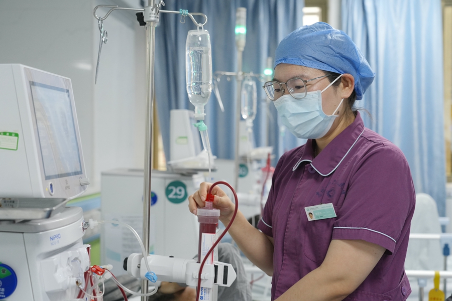 由于長時間透析,患者會有較大的心理負擔和經濟壓力。董麗霞說,除了用飽滿的熱情、溫暖的語言、真摯的眼神、嫻熟的護理技術為患者排憂解難,更主要的是善于觀察,及時發現患者的心理變化,做好心理疏導工作。“在這里,生命是脆弱的,又是頑強的。”她說,生命在一輪輪透析中生生不息,她也將全心全意做好守護者。