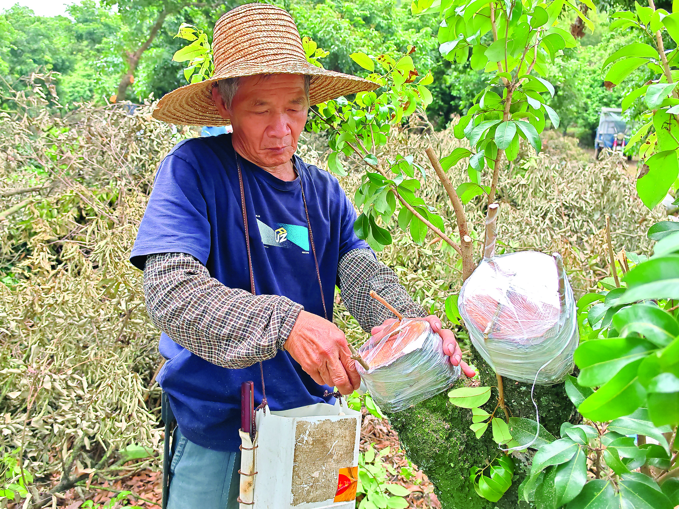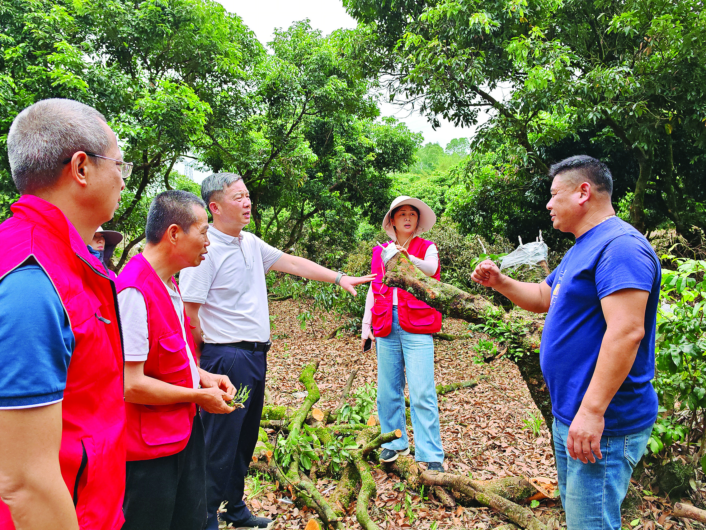 市農業農村綜合服務中心農技服務“輕騎兵”指導荔枝種植戶開展高接換種。