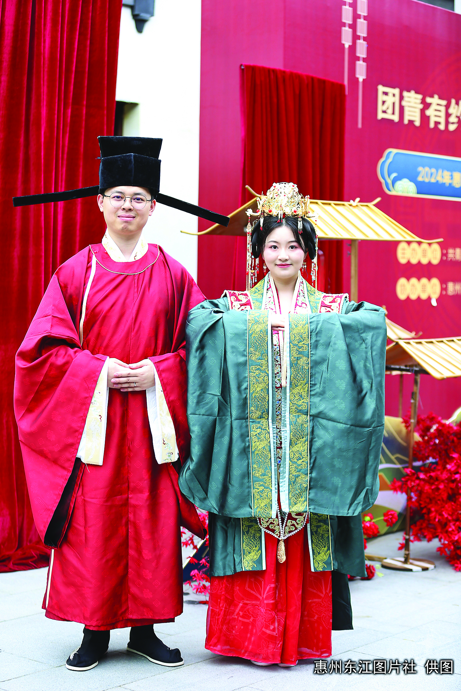 本次集體婚禮分市級主會場和七個縣(區)分會場進行,全市共200對新人參加,其中市級主會場50對。集體婚禮以“宋制”形式舉行,讓新人感受別樣宋韻,既隆重古樸、儀式莊重,又集約節儉、健康文明。儀式前,還舉行了“喜結連理枝 共植愛情林”結婚種棵樹主題活動,新人們在湯泉林場種下喜結連理樹,參與綠美惠州生態建設。
