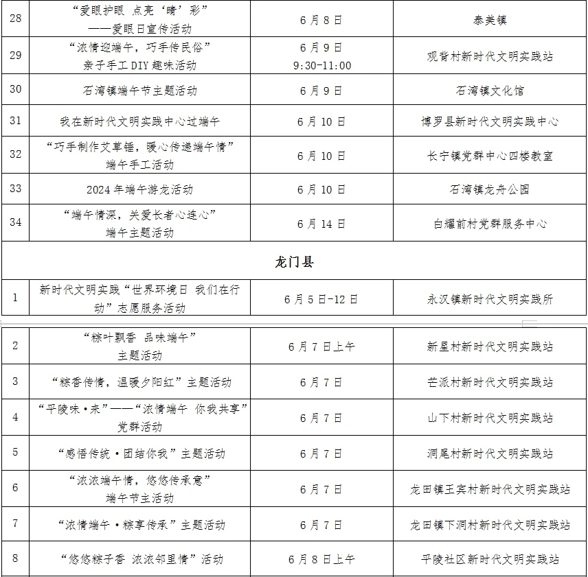 惠州日報訊 (記者譚琳 龔妍)端午期間,我市將舉辦“惠聚美好”新時代文明實踐活動——2024年“我們的節日·端午”主題活動,159項文明實踐活動將讓你的假期生活更加豐富多彩。